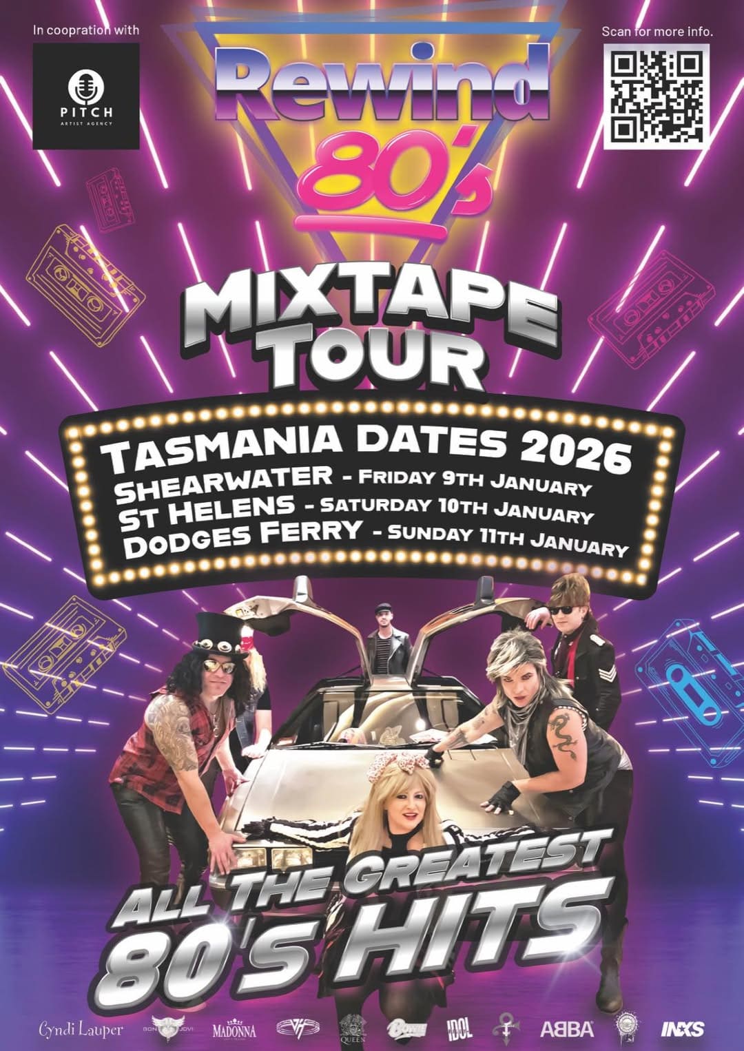 This multi-piece live show will deliver two high-energy party sets, immersing guests in the ultimate celebration of nostalgia. Get ready for iconic hits from David Bowie, Madonna, Cyndi Lauper, INXS, Queen, Kim Wilde, Van Halen, Duran Duran, Guns N’ Roses, Tears for Fears, ABBA, and more—all on the mixtape setlist for the night!